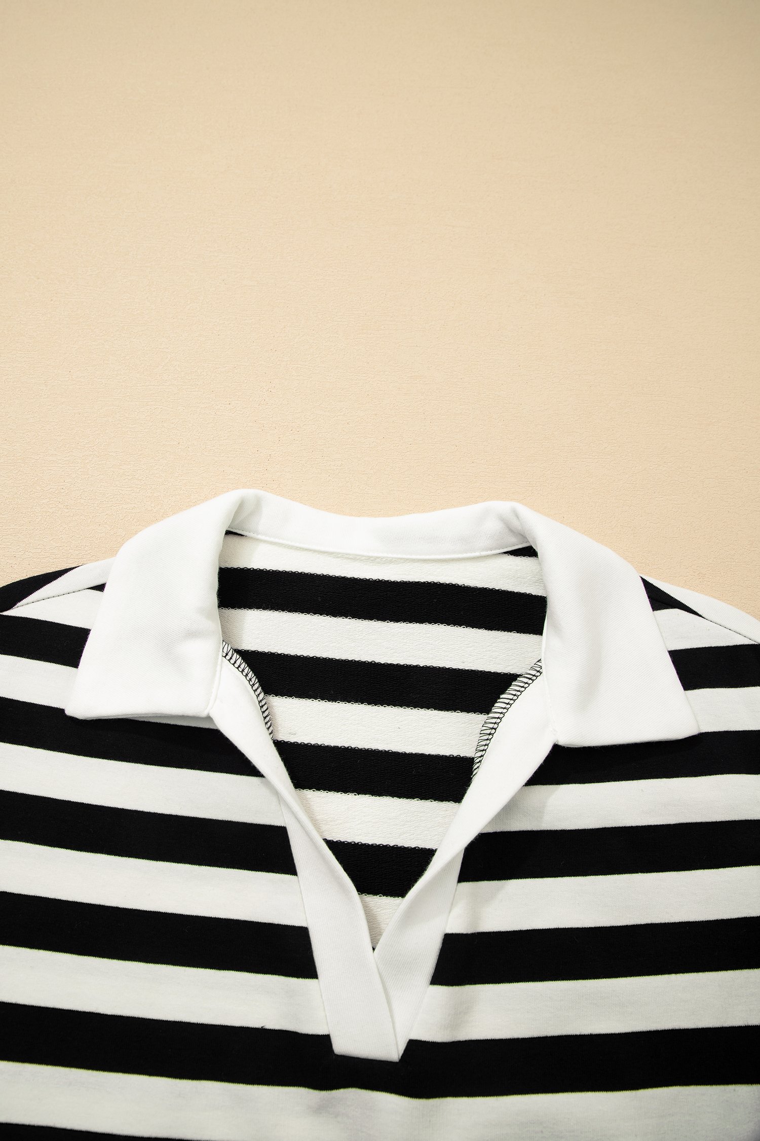 - Striped print adds classic charm to this women’s collared V neck blouse.